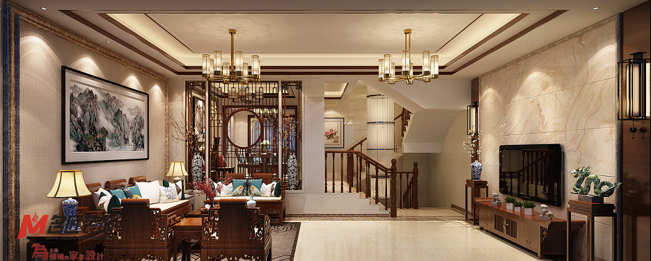 日照敏捷别墅新中式风格装修效果图